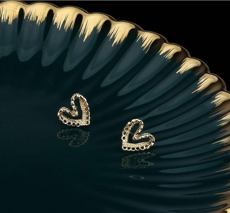 These earrings boast heavy 18K gold plating and solid S925 silver posts, making them both delicate and durable. With their charming lace heart design, they're a must-have for any jewelry collection.?
