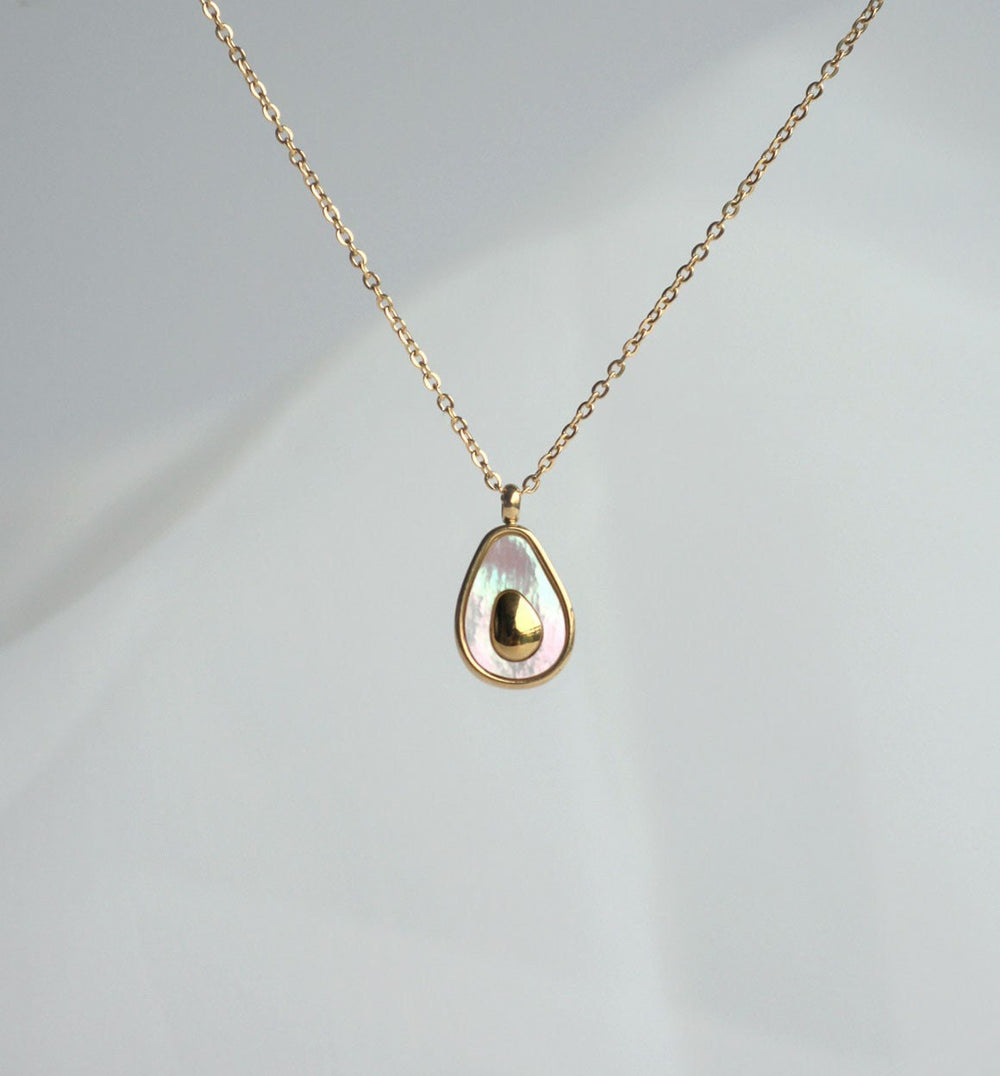 For those who are passionate about avocados, this necklace is a must-have. With a dainty design, it's perfect for everyday wear. The 14k gold-plated vermeil avocado has a unique touch with its enamel white part. You can even wear it in the shower without worrying about tarnishing.?