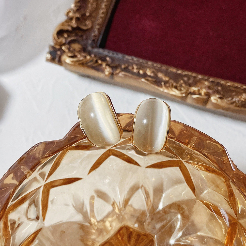 ?Take your style to the next level with these Cat¡¯s eye Stone Earrings! Made with 14k gold plated vermeil and stunning cat¡¯s eye effect glass, these earrings will add a touch of whimsy to any outfit. Don't worry, no cats were harmed in the making - these are just imitation stones! Finished with sleek sterling silver posts, these earrings are a must-have for any playful and fun-loving fashionista.