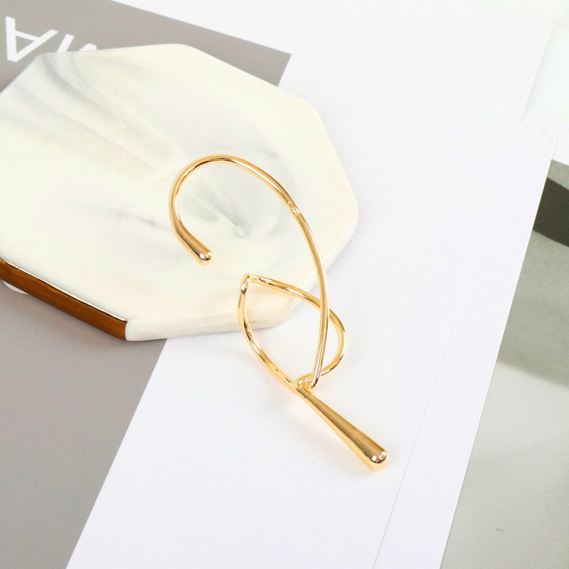 Individually sold. One-of-a-kind ear cuff in gold with drop charm. Chic and contemporary. No piercing necessary. Just softly squeeze to fit. Made with Body-14K gold plate vermeil.?