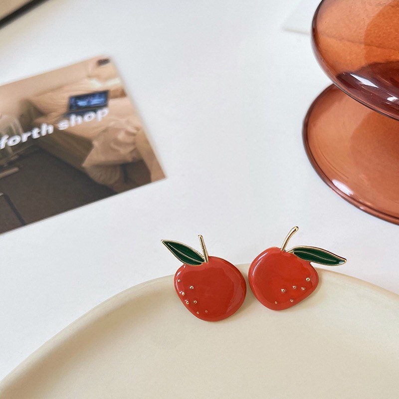Best summer earrings! Juicy fruit earrings for fruit lovers! Look at our sweet strawberry, orange and apple earrings.