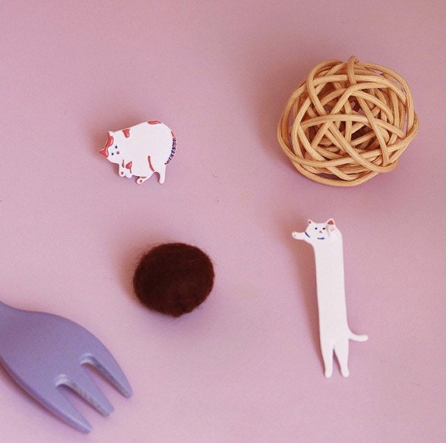 ?Get your paws on these funky Whimsy Cat Duo Earrings - hand-painted with sterling silver studs! They make the purrfect gift for cool kitties. Made from enamelled ceramic and copper-based metal, these artsy feline earrings have hand-painted enamel colors and silver posts. (And they're simply meow-velous!)