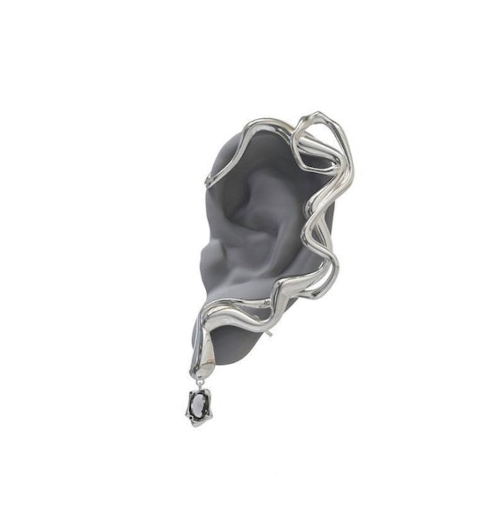 Get ready to add some whimsy and playfulness to your ear game with this Doodle Lines Ear Cuff! Perfect for any left ear, this ear cuff features a pear-shaped?CZ and a spider web design, adding a touch of quirkiness to your style. And with its white gold (rhodium) plated vermeil, you'll be sure to stand out from the crowd. Sold individually, so go ahead and mix and match with your other favorite earrings for some odds-defying fun!?