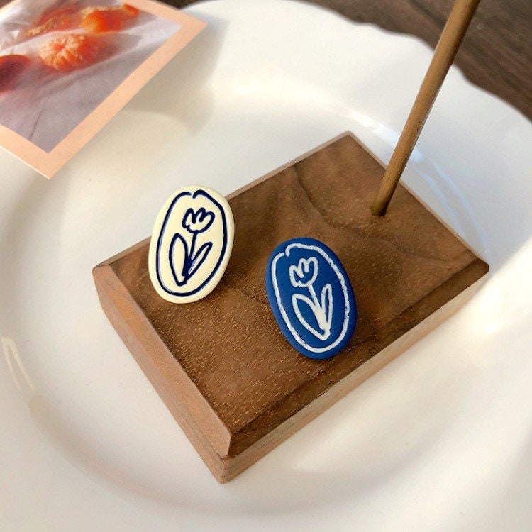 Add a playful touch to your style with our enamel flower earrings. These cute and simple mismatched studs feature hand-painted designs in white and blue, inspired by Japanese anime. With sterling silver posts, these Kawaii earrings are the perfect pop of color (and fun) for any outfit.?