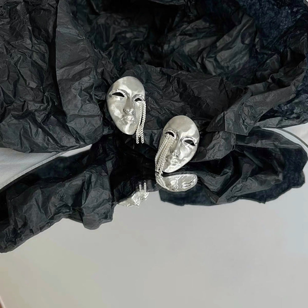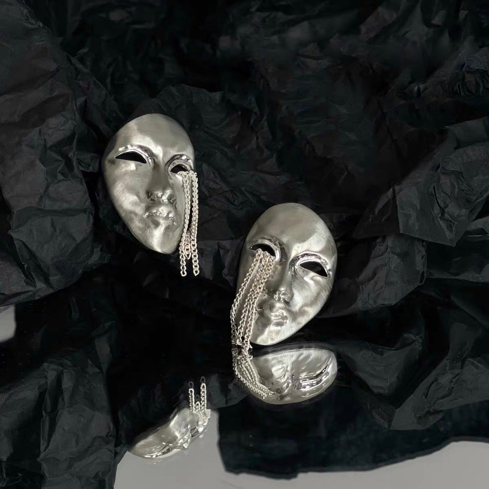 Crafted with hypoallergenic alloy, these striking Crying Face earrings feature unique details such as Cool tassel chains and Abstract face designs. The playful Tear tassels, 14k gold plated, are accompanied by solid sterling silver posts that are gentle on sensitive skin. These one of a kind earrings are ideal for that special someone.