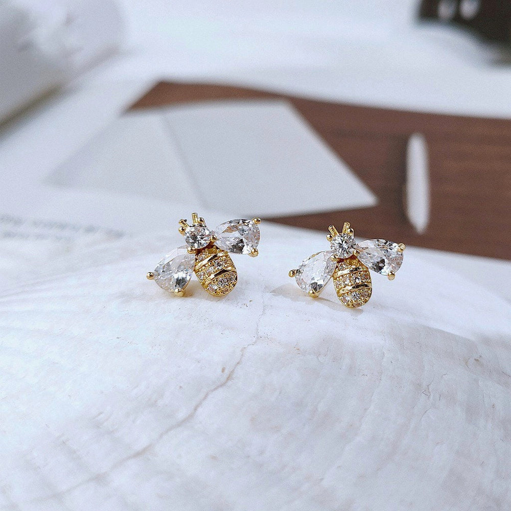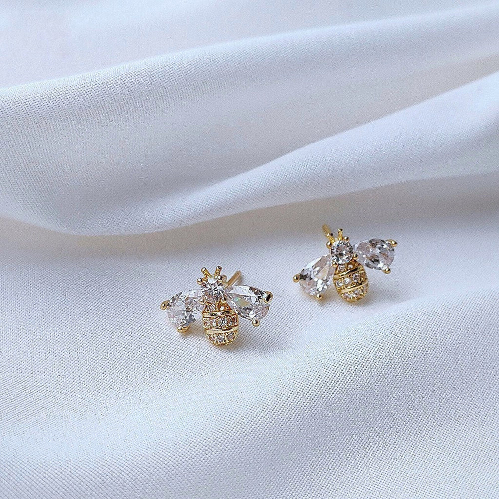 Be the buzz of the summer with our sparkling Gold Bee Earrings! Featuring crystal wings and a pave body, these elegant studs are the perfect nature-inspired accessory. Made with solid sterling silver and 14K yellow gold plating, the best quality CZs make these earrings truly buzz-worthy.