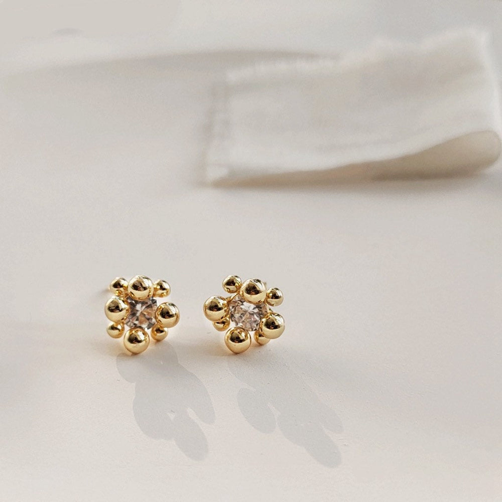 Transform your everyday look with these Gold Bubble stud earrings. Made with 14k gold plated vermeil and adorned with crystals, these dainty and cute earrings are sure to make a splash. The solid sterling silver posts ensure comfort while the playful design adds a touch of quirkiness to your style. Perfect for the little mermaid in all of us!