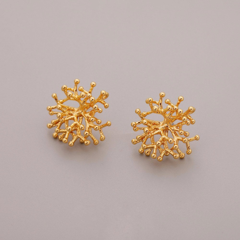 Ocean-loving beauties unite! These unique Gold Coral-inspired stud earrings will have you feeling like a sea goddess with their intricate marine design and eco-friendly materials. Made with sterling silver posts and a 14k gold plated vermeil, these elegant accessories will make the perfect gift for that special someone. And at 2.3cm x 2.3cm, they're the perfect size for showing off your love for the ocean without going overboard (pun intended). So don't wait any longer, add these dainty coral branch earrings to your collection now!?