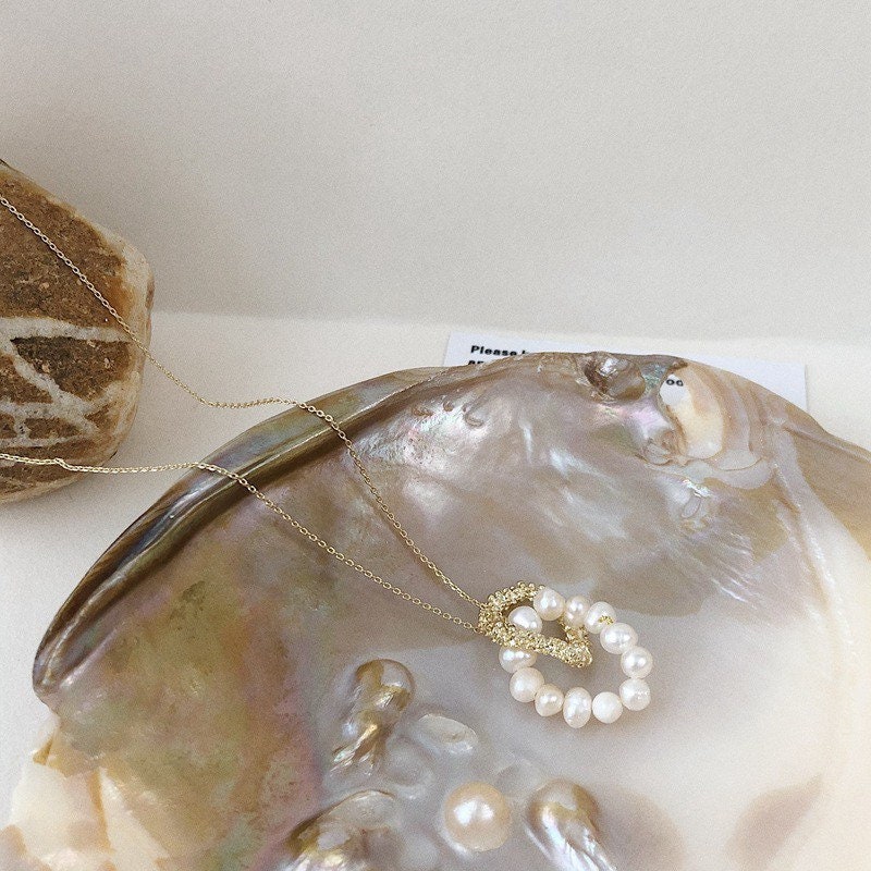 Simple yet elegant, this gold chain necklace features a pearl-encrusted open circle pendant, perfect for adding a timeless accessory to any woman's jewelry collection.?It adds a touch of natural beauty to any look. A perfect gift for any occasion, including Mother's Day!