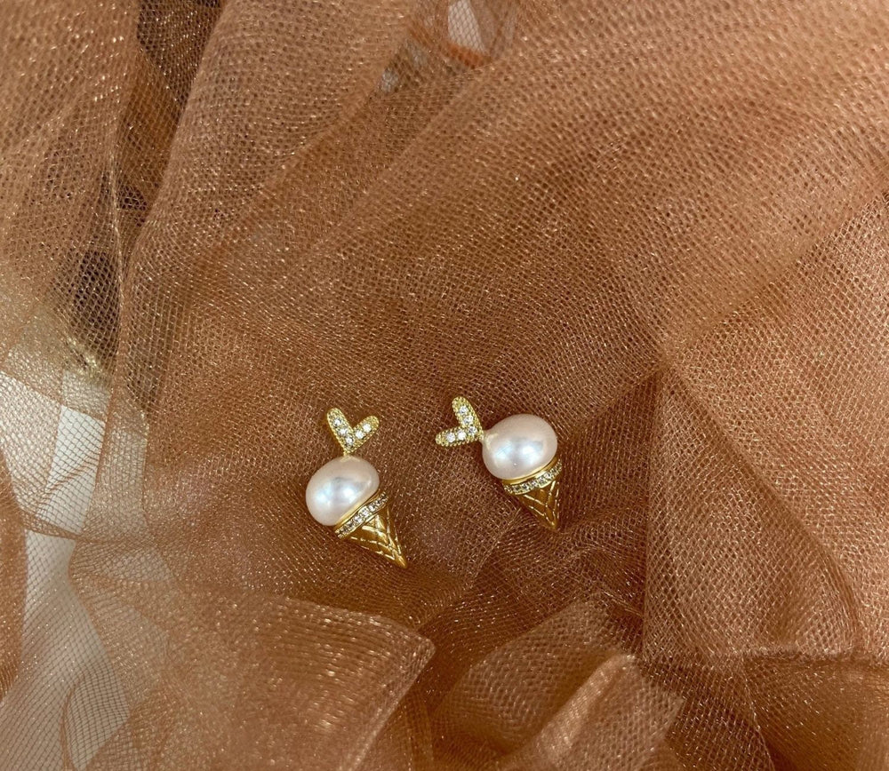Add a spark of fun and elegance to any outfit with our Heart Ice Cream Cone Earrings. These dainty earrings feature a classic stud design with a heart-shaped, sparkling pav¨¦ top and a versatile gold tone finish. Perfect for both formal and casual wear, these earrings make a great gift idea for any jewelry-loving foodie. And best of all, they're plated in 14k gold for a touch of luxury without breaking the bank. Solid sterling silver posts keep these earrings secure and comfortable for all-day wear.