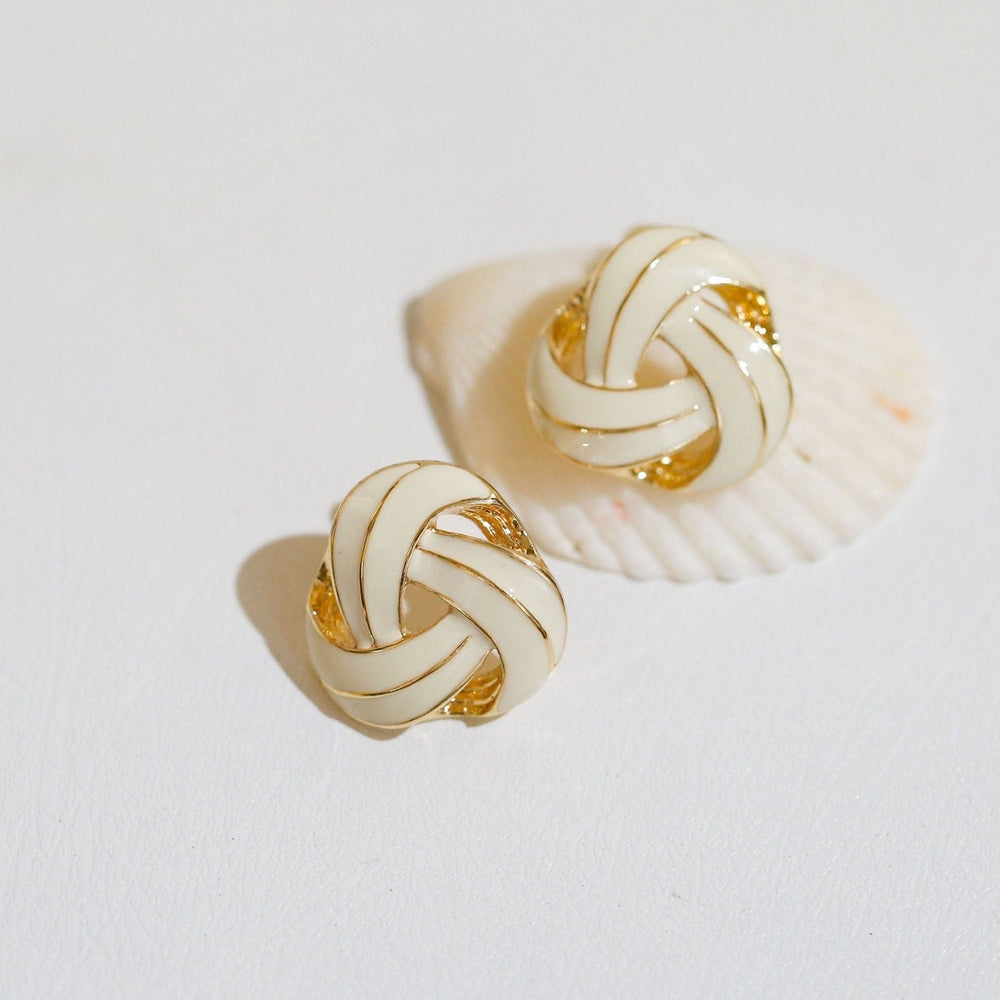 These Opalescent Knot Triangle Earrings are an elegant and quirky addition to any outfit. Made with elegant gold-tone hardware and a playful swirl pattern, they are the perfect accessory for both daily wear and party time! The body is plated with real 14K gold and the posts are made of solid sterling silver, making them safe for even the most sensitive skin.