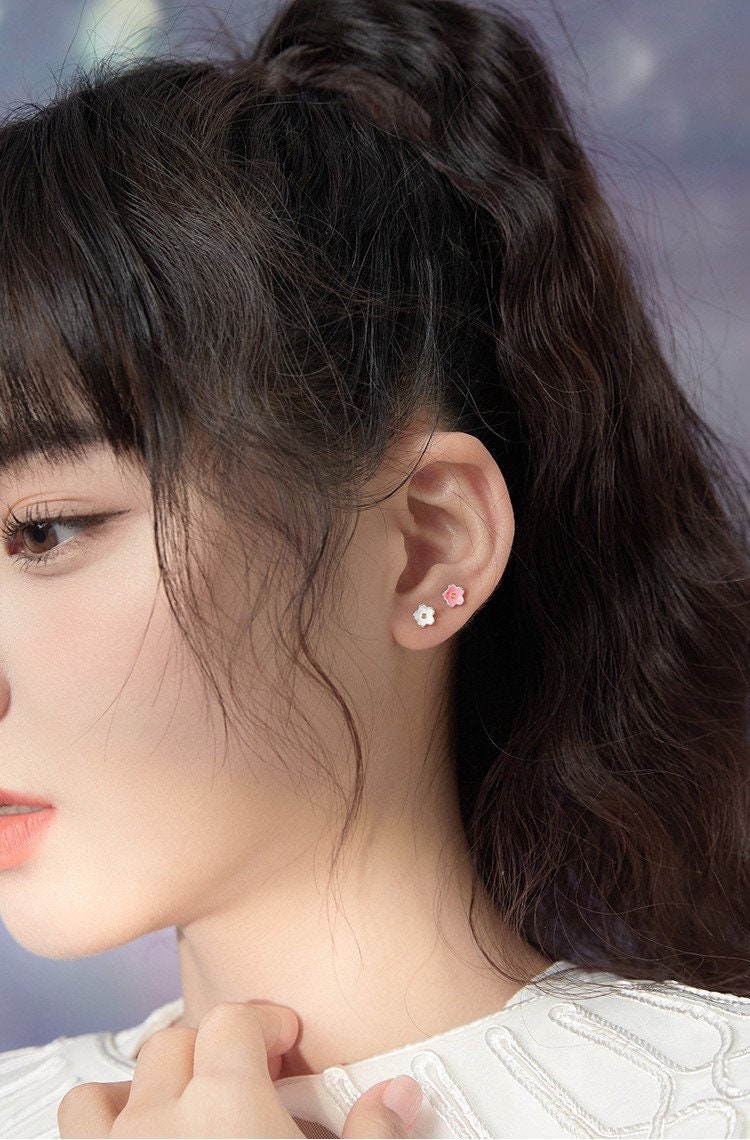 Get two earrings in each set of Little Vivid Flower Enamel Studs - super adorable floral earrings in Pink, Blue, Orange, and White!