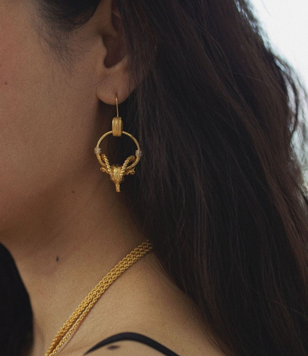 Order Now and Shine with Elegance: Add a touch of luxury to your jewelry collection with our Ram Design Real Gold Plated Anti-Tarnish Earrings. Shop now and enjoy the perfect blend of elegance and durability.