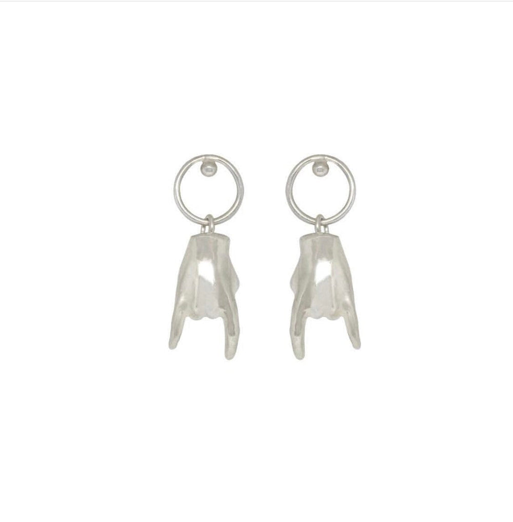 Embrace your inner rockstar with Magic Little Hands - Rock n Roll, Gesture Earrings, crafted from Solid Sterling Silver. An exercise in sustainability, these unique pieces are a true reflection of the artist in you. Perfect for best friends or as a greeting of friendship.?