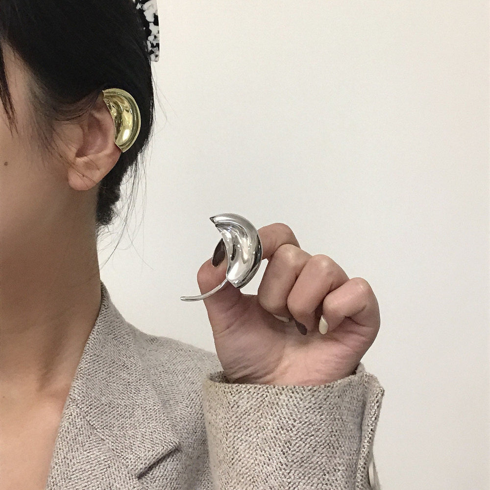 Rock the ear party with this single Metal Ear Cuff! Bold and chic, these statement earrings are 3D printed and plated with 14k yellow gold and white gold (rhodium). Perfect for the right ear, these earrings are sure to make a stylish statement. For right ear only.