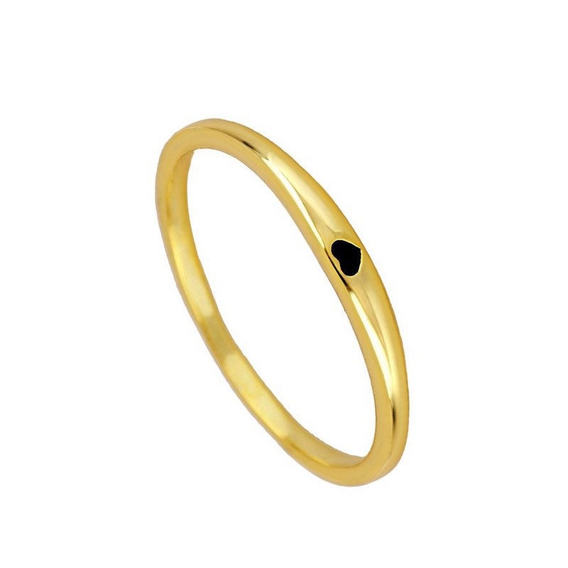 Simple gold ring with hand painted black enamel heart. Easy to stack with other ring or be worn individually. Will be a collect you¡¯ll never regret.